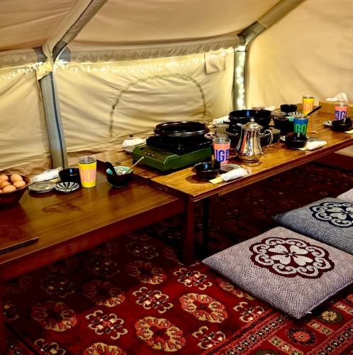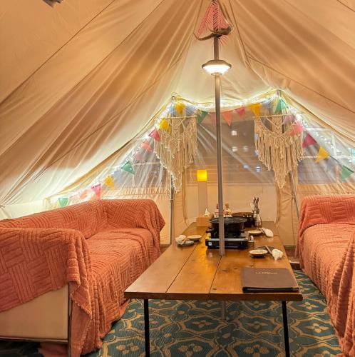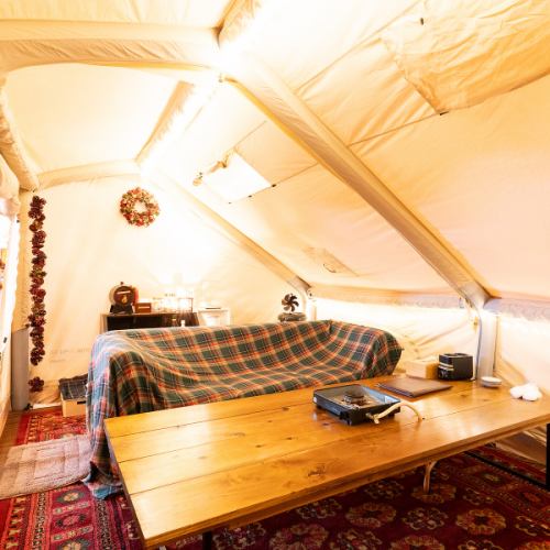 冬は2~6名様でグランピング気分が楽しめる個室テント席を3席限定でご用意!おしゃれなテント席でホカホカお鍋が楽しめます♪